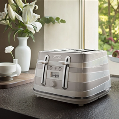 Отдельного внимания заслуживает не только функционал, но и дизайнерские решения, разработанные производителем итальянского бренда De’Longhi. Различные цветовые вариации тостеров, предлагаемых компанией, легко решают вопрос о том, как вписать новый аксессуар в интерьер вашей кухонной зоны. А любители оригинальных решений, несомненно, оценят уникальный ретро-дизайн легендарной коллекций Icona, созданной в итальянском стиле 1950-х годов.