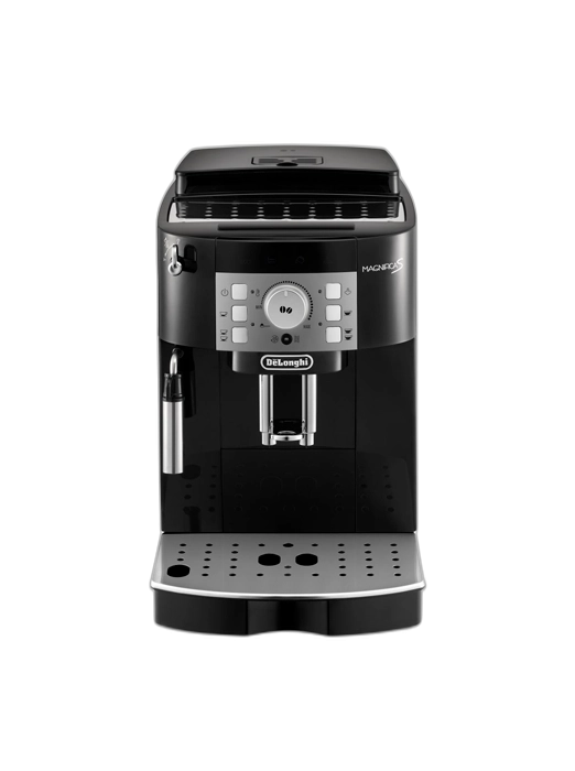 Автоматическая кофемашина DeLonghi ECAM 22.114 приготовит порцию вкусного бодрящего кофе всего за пару минут. Эта модель делает не только эспрессо, но и молочные напитки на его основе, благодаря ручному капучинатору. Степень помола можно регулировать – доступно 13 вариантов. Емкость контейнера для зерна – 250 г. Доступен выбор объема, температуры горячей воды и крепости напитка. Можно приготовить две чашки эспрессо одновременно. Управление производится при помощи кнопок и поворотного регулятора. Диспенсер регулируется по высоте – удобно использовать и маленькие чашки, и бокалы, не забрызгав прибор и столешницу. Металлические жернова обеспечивают долговечность и нужную степень помола. Кофемашина отключается автоматически, эту функцию можно настроить вручную, установив таймер на 15, 30 или более минут. Прибор уведомит о необходимости провести цикл очистки от накипи.