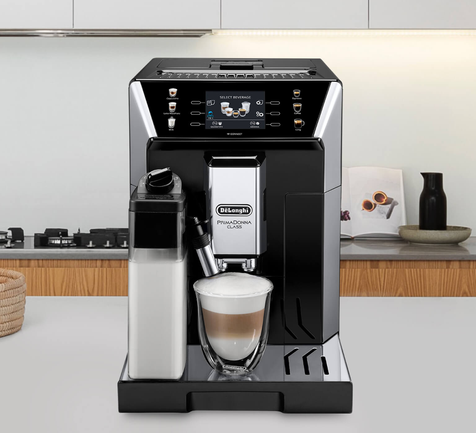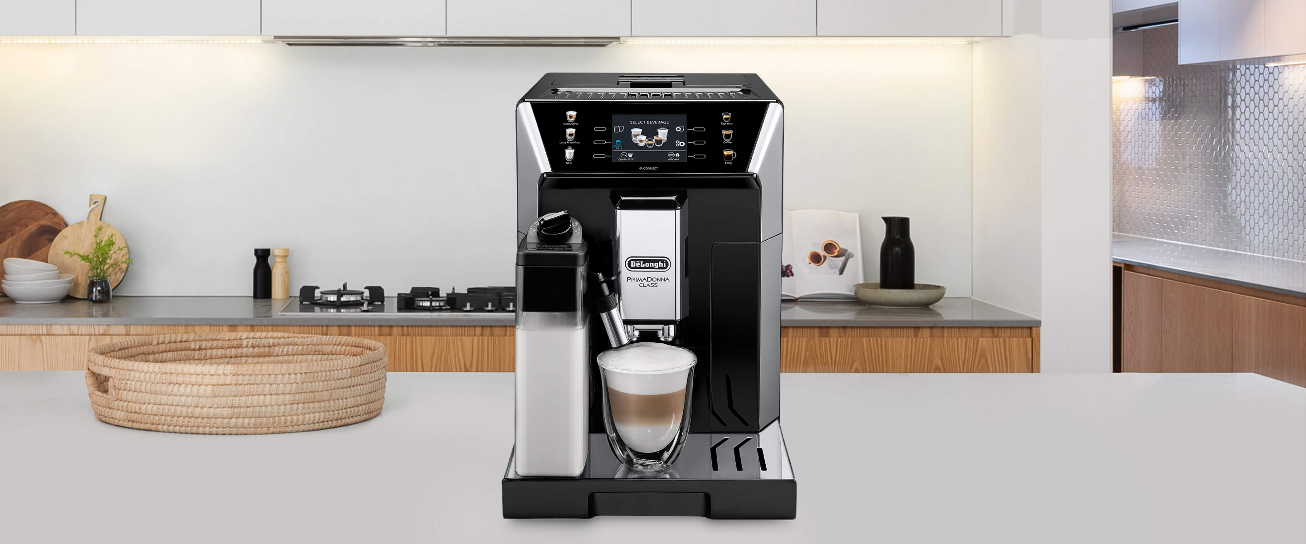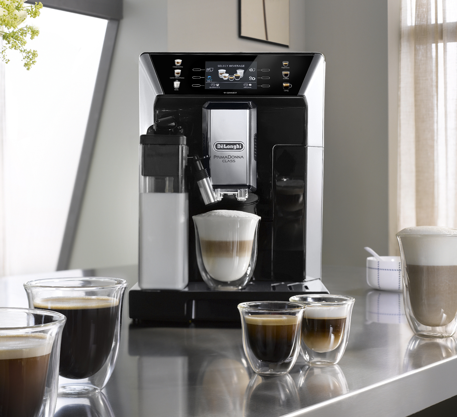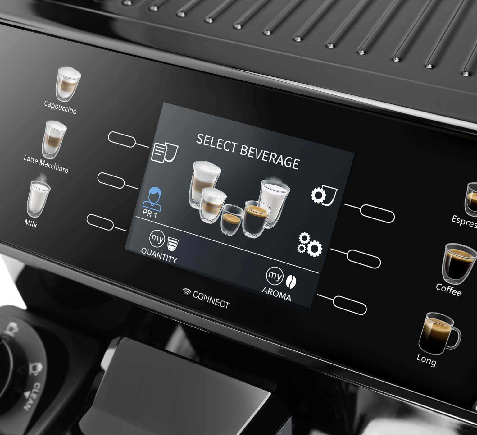 Резервуар вмещает 2 л воды – хватит, чтобы приготовить кофе для семьи и друзей. Две чашки эспрессо можно заварить за раз. У встроенной кофемолки 13 степеней помола – выбирайте оптимальный вариант в зависимости от сорта кофе и ваших предпочтений. Допускается использование и молотого кофе, для которого есть специальный отсек. Благодаря автоматическому капучинатору с запатентованной системой LatteCrema System кофемашина приготовит кофейно молочные напитки с идеальной пропорцией кофе и молока, а благодаря функции Auto Clean вы сможете автоматически очистить систему подачи молока.